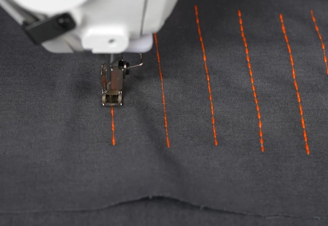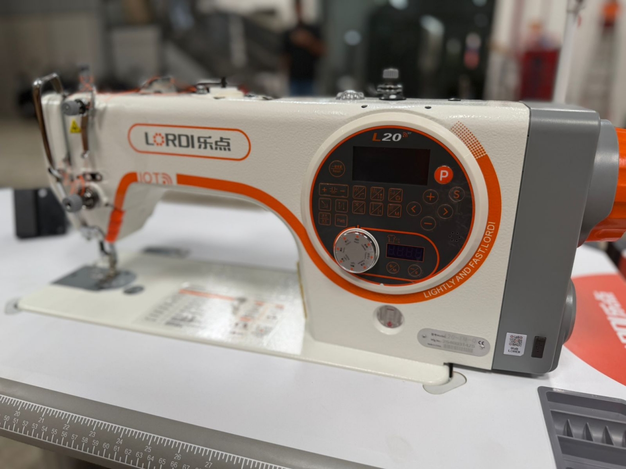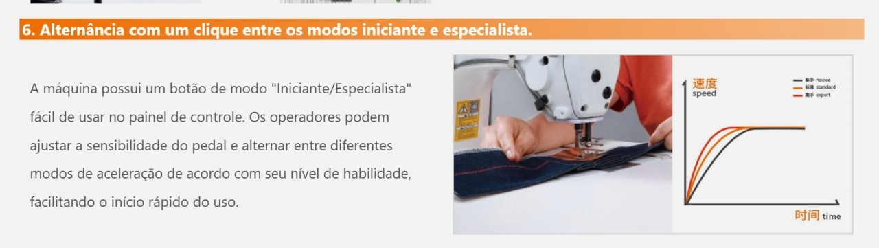 5. Máquina de costura de padrões com motor de passo, silenciosa e com comprimento de ponto ajustável.