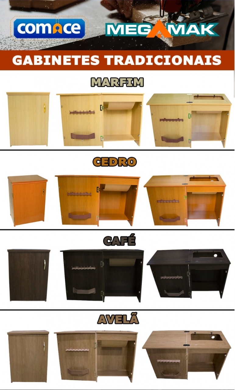 Este gabinete se adapta somente nas máquinas FACILITA 2868, Facilita 2968, FACILITA PRO HD 210, Zig Zag DP002 e Costura Reta 15C