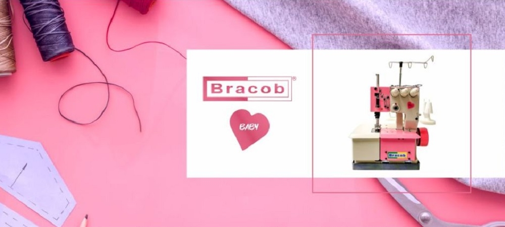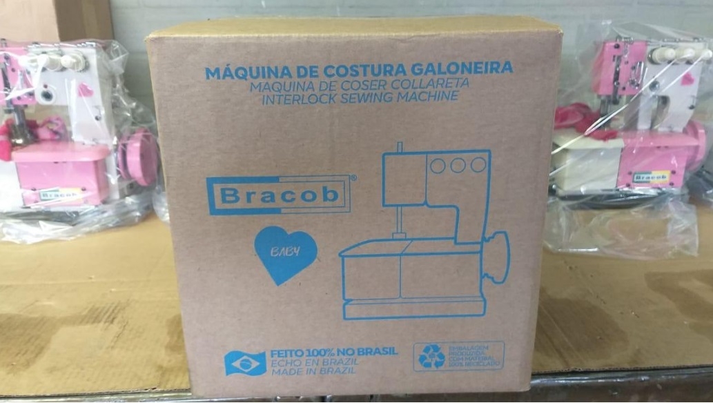 Este modelo de máquina é portátil de 2 agulhas, Bracob Baby agora na cor rosa .