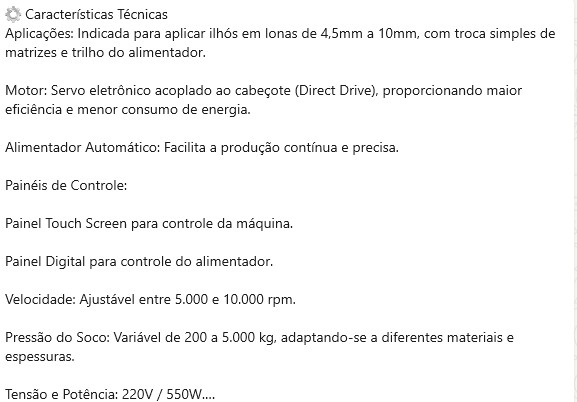 Essa alta rotação, combinada com o motor servo direct drive, permite uma operação rápida, precisa e eficiente — ideal para produção em larga escala como: