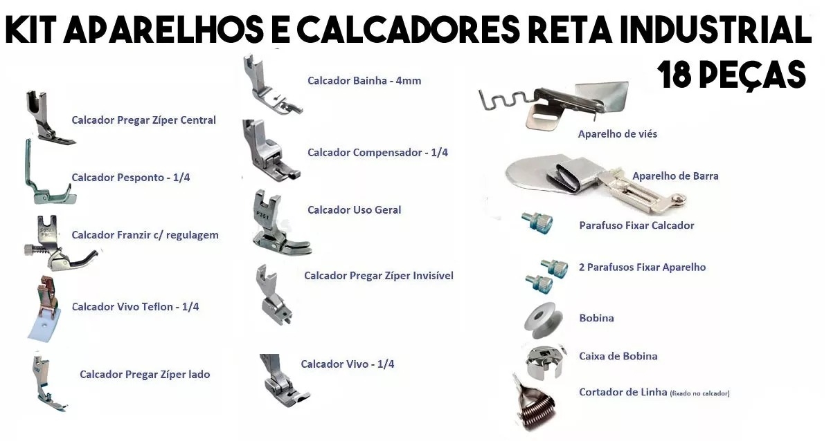 *Se puder, prefira comprar os pés calcadores em lojas física, assim, fica mais fácil de identificar e tirar as dúvidas de qual é o certo para sua máquina.