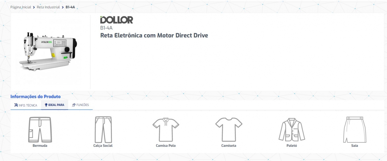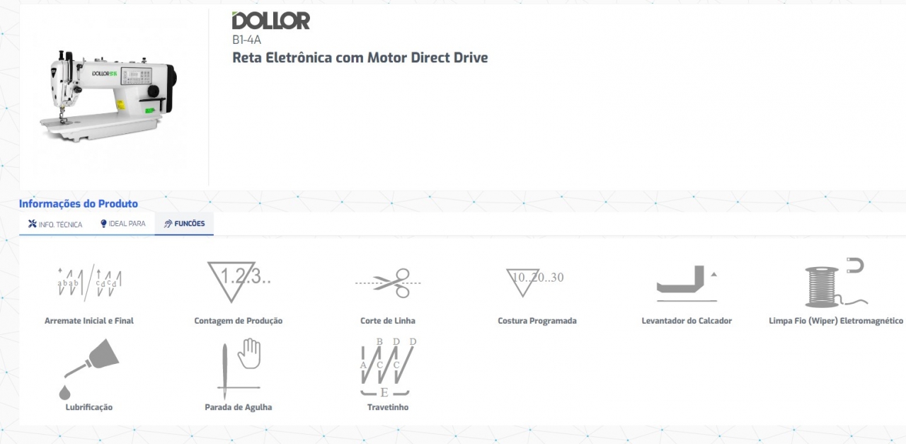 Motor Eletrônico Direct-Drive ligado diretamente ao eixo principal que proporciona maior agilidade na partida da máquina por não utilizar correia.