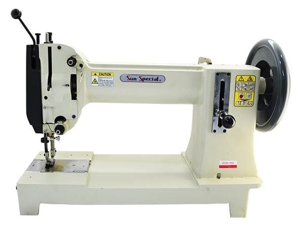 Máquina de Costura Industrial e Remendo de Big Bag SSGB-6800 Utilizada em selaria, sacaria e encerados Velocidade maxima 1000 PPM Tamanho maximo do ponto 12 mm Levantador de calcador 14 / 22mm Lancadeira oscilante