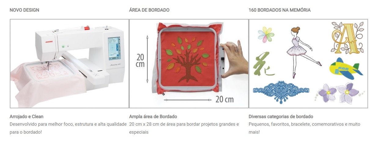 -Formato do arquivo de Bordado: .JEF, .JEF +, .DST
