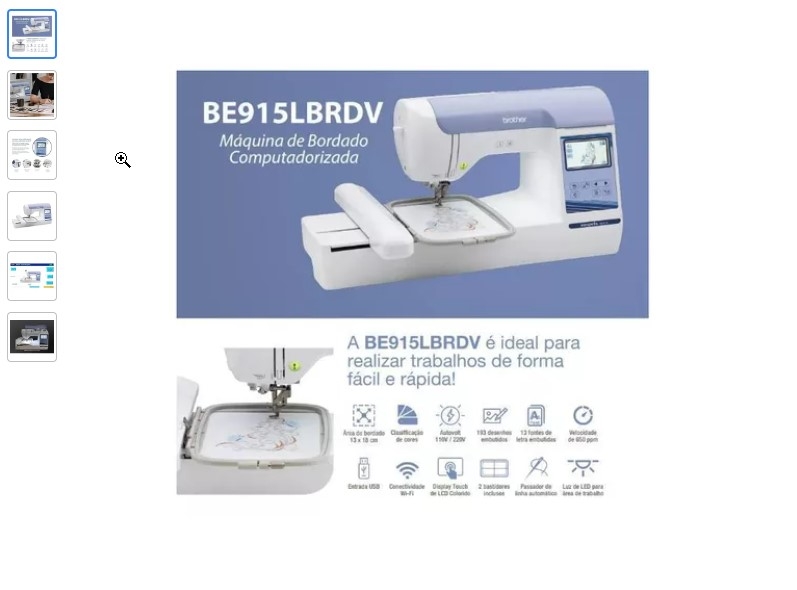 A moderna Brother BE 915L é uma Bordadeira Computadorizada ideal para realizar trabalhos de forma fácil e rápida. Oferece a função Edição de Bordado o qual permite que você aumente, diminue e une dois ou mais desenhos de bordado no próprio painel da máquina. A Brother BE 815 L oferece ampla área de bordado (13x18 cm) e Display Colorido e agora com conexão via wfi