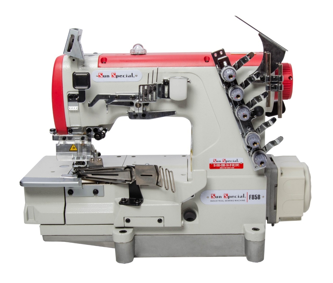 Máquina Costura Industrial Galoneira Plana Aberta com Motor Direct Drive e Bitola 6.4mm SS858-D-02-BBX-364 - Sun Special
