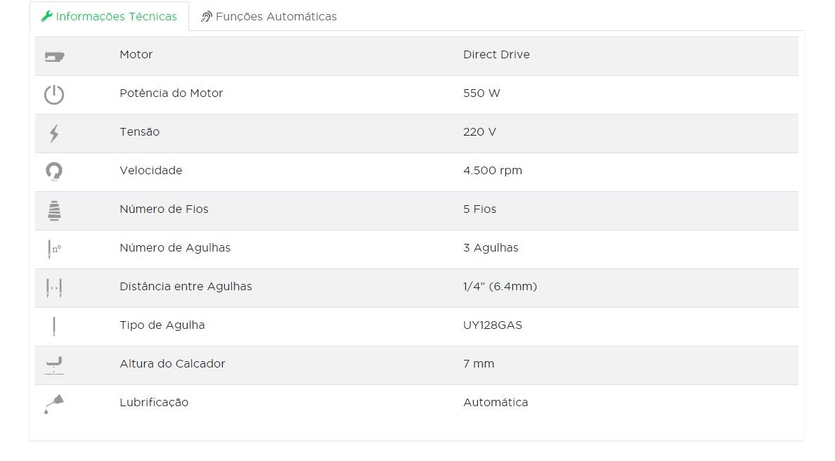 - Ajuste de comprimento do ponto por botão (excêntrico);