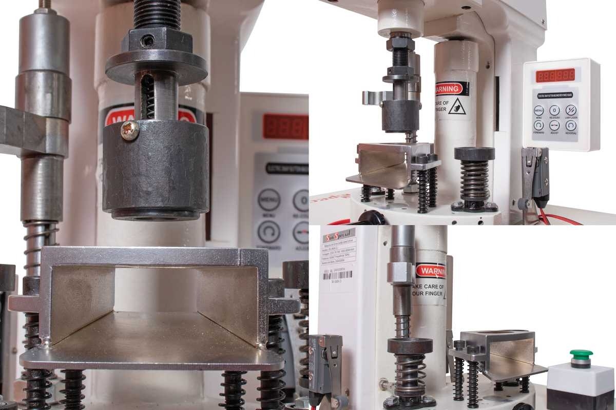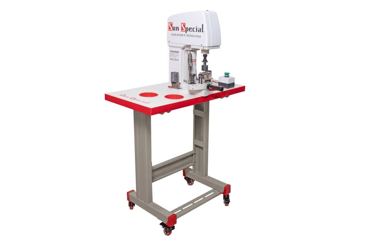 Indicada para forrar botões em diversos tamanhos, trocando somente as matrizes inferior e superior. Com alimentador triplo, motor servo eletrônico direct drive acoplado ao cabeçote, estrutura inovadora simples e painel de comando digital.