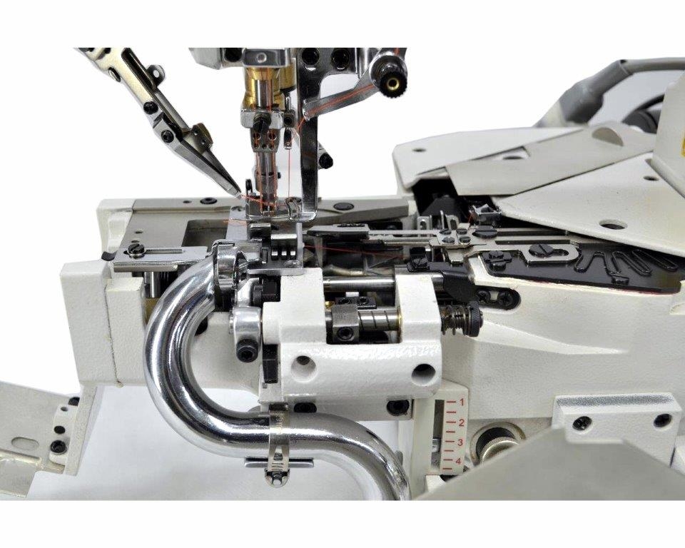 Máquina de costura industrial galoneira base cilíndrica com refilador. Aplicação para bainha.