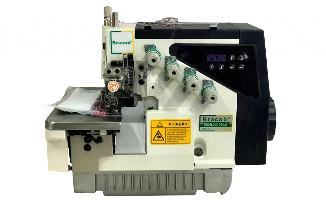Máquina de costura industrial overlock direct drive. Aplicação para pré-costura, lateral de calças e camisas, pregar gola camisa polo, etc.