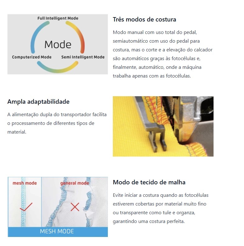 AJUSTE DE TRANSPORTE ENTRE TECIDOS LEVES, MEDIOS E PESADOS, SISTEMA DE CORRECAO INTELIGENTE DO TORQUE DO