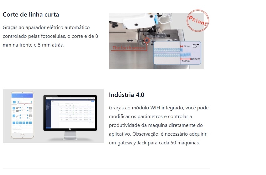 AUTOMATICA, AVISO DE NIVEL DO OLEO, SENSOR INTELIGENTE PARA RECONHECIMENTO DO TECIDO (ENTRADA E SAIDA),