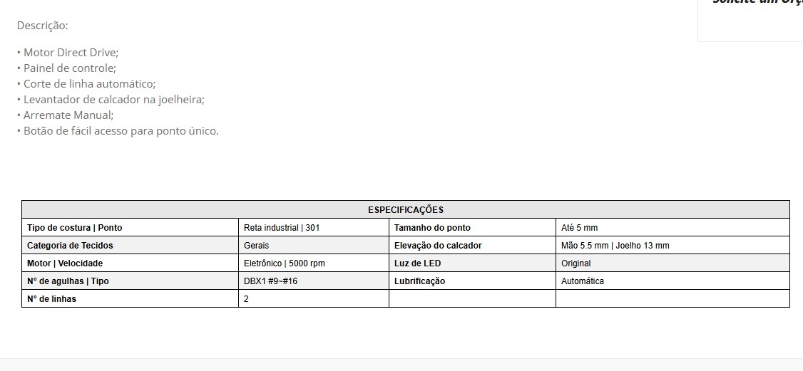Máquina de Costura Reta Eletrônica Com corte de Fio/Linha- Nippon NS-ES-1