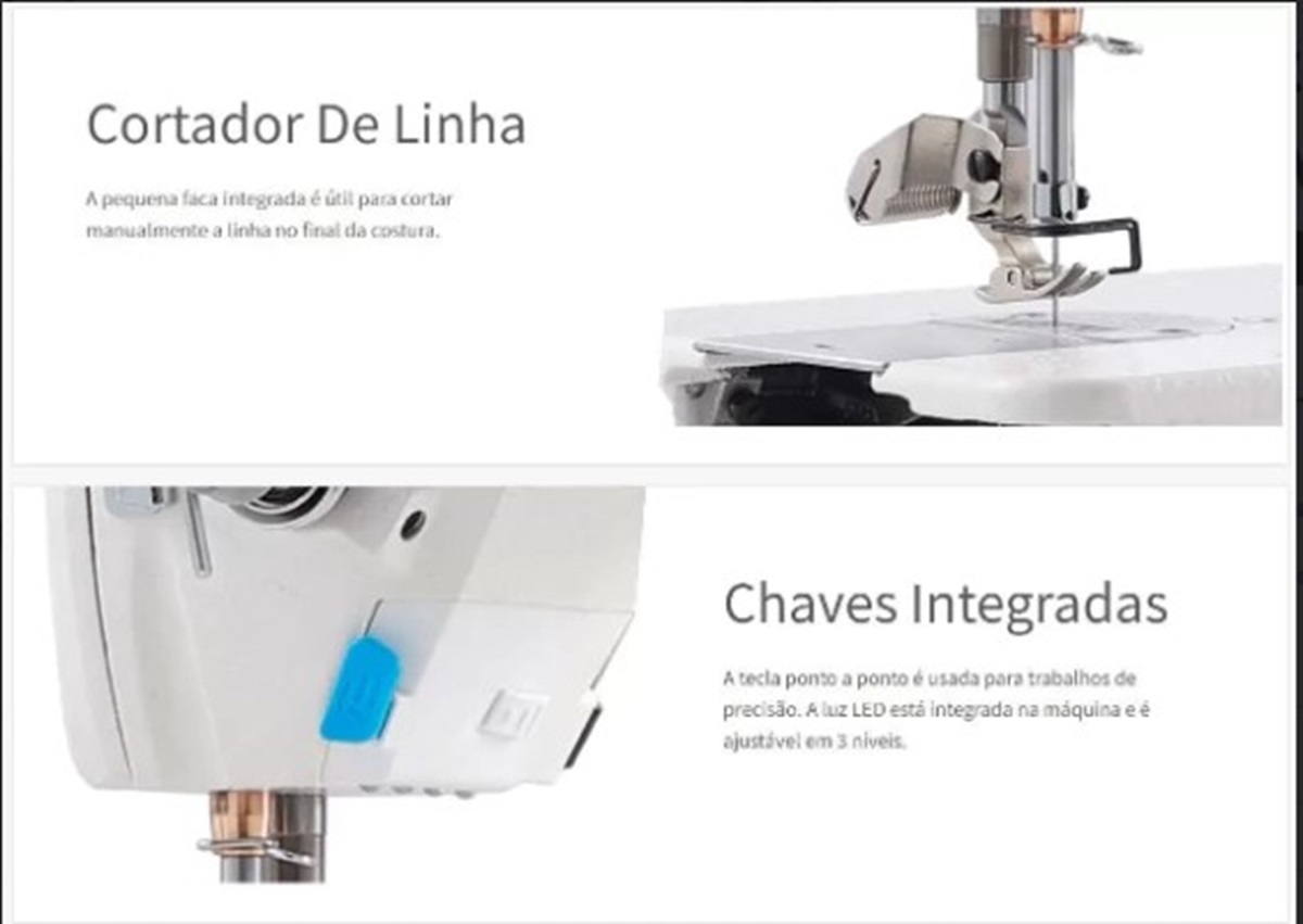 – Barra de agulha com micro-lubrificação que reduz o risco de manchas de óleo no tecido.