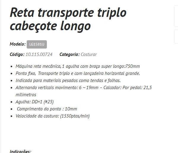 Máquina de Costura Reta Transporte Triplo Cabeçote Longo Juki LG1581U