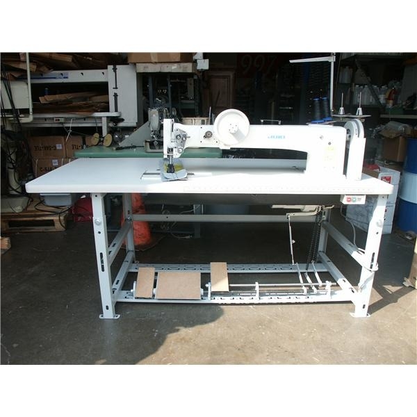 Esta é uma máquina enorme. A cabeça pesa cerca de 400 libras, por isso vem com uma mesa robusta e resistente. Costura facilmente com linhas de tamanho 69 a 138. Embora esta seja a maior máquina de braço longo feita pela Juki, não é a mais cara. Os modelos eletrônicos mais novos com todos os sinos e assobios custam mais, mas não podem ser comparados em tamanho.