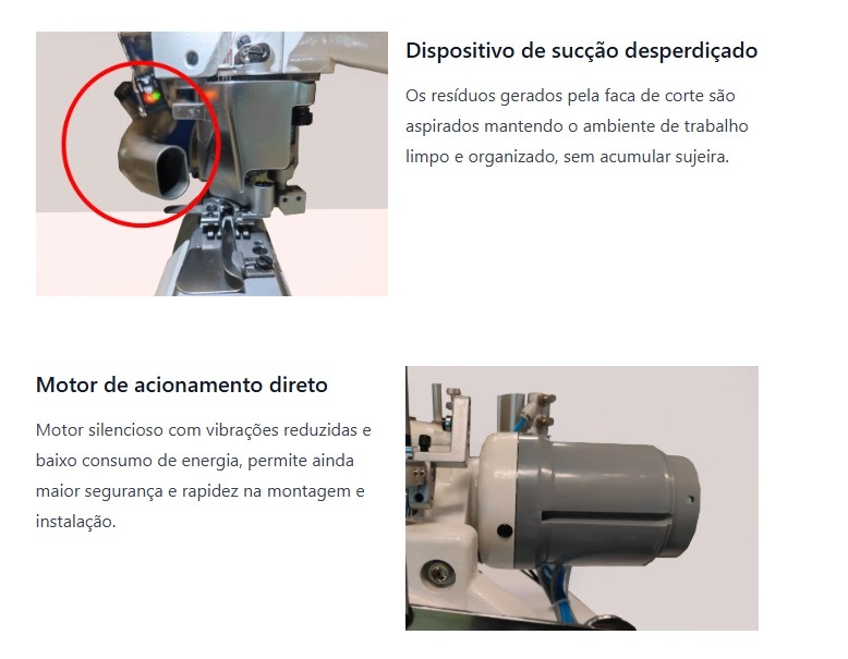 9 - As máquinas com Direct Drive podem trabalhar com rotações variáveis de até 8.500 RPM, dependendo das especificações da máquina.