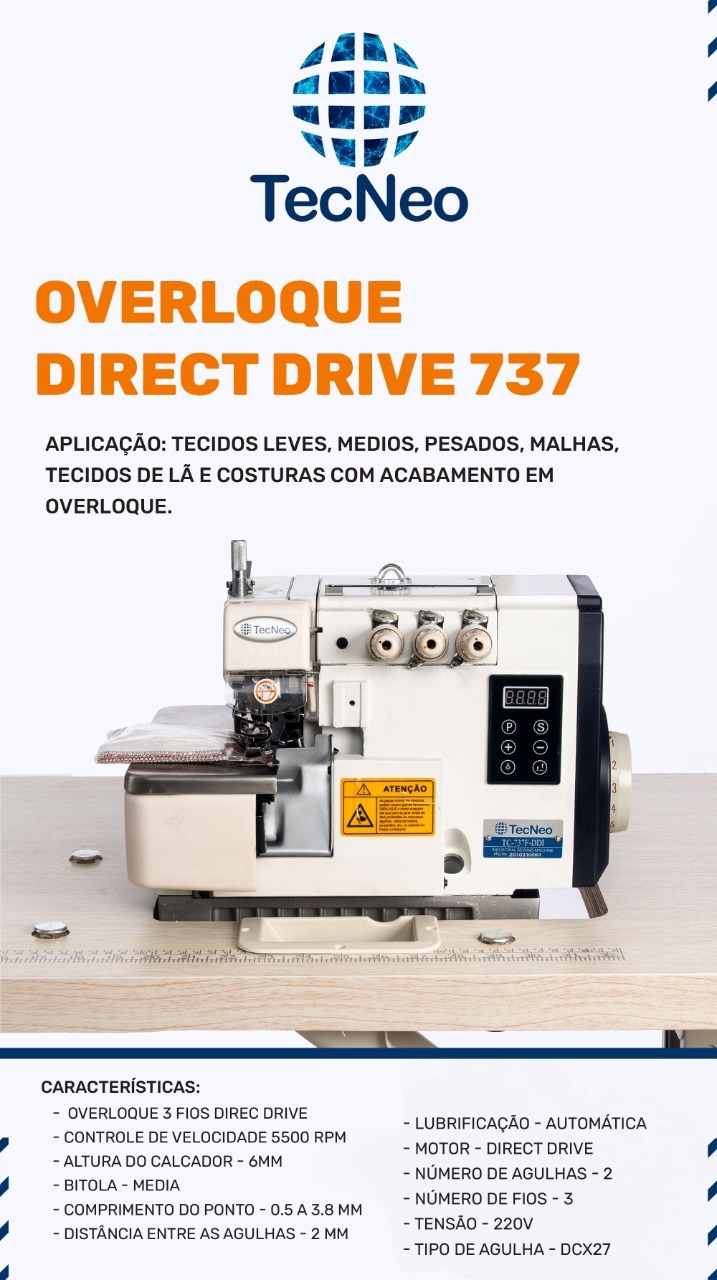 Máquina Overlock Direc Drive 550w, 3Fios, 220v-TEC NEO,Precisando de uma Overlock com tecnologia e economia???