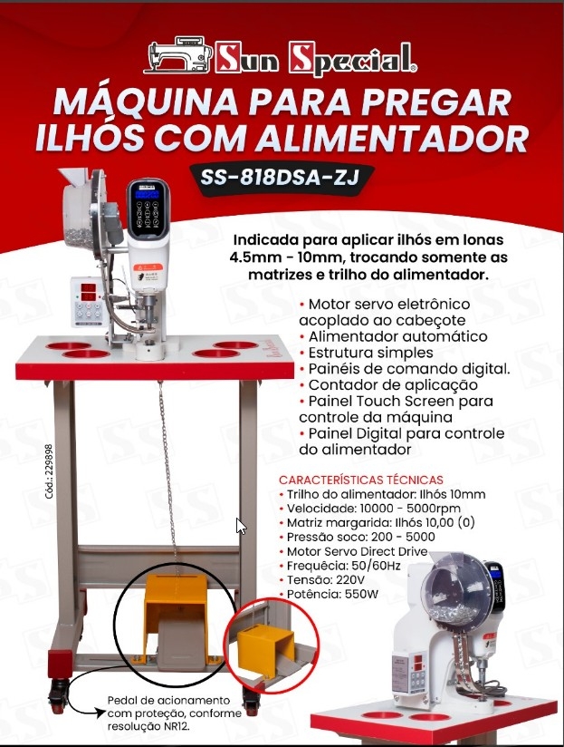 Máquina para Pregar Ilhós em Lonas 4.5mm - 10mm - Sun Special SS-818DSA-ZJ