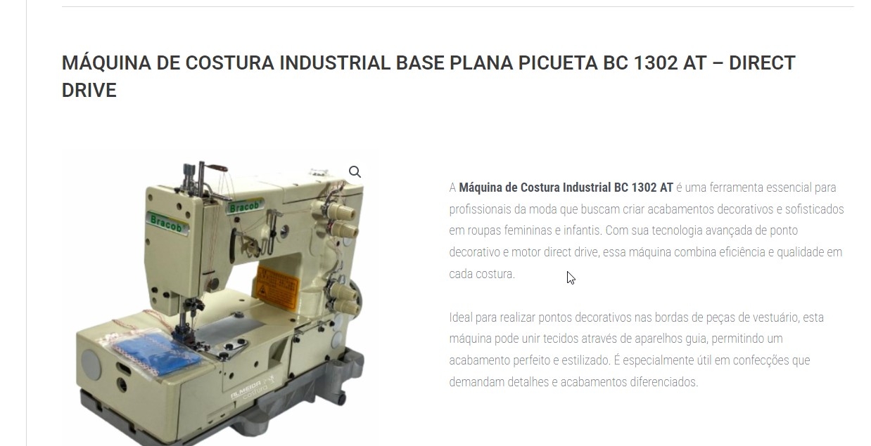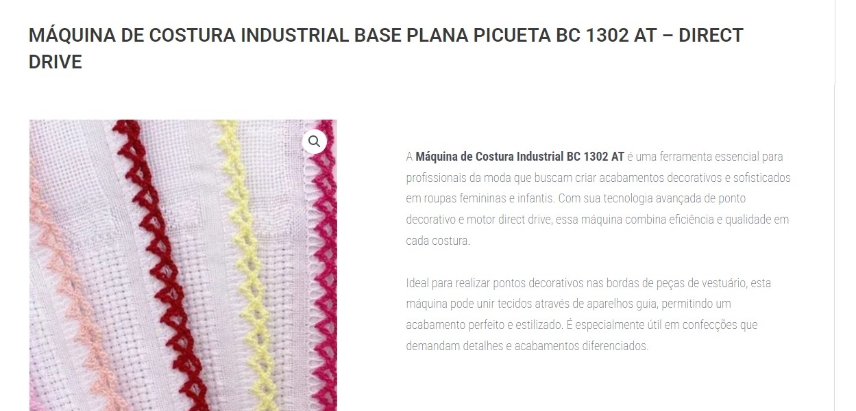 Eleve o padrão de suas criações com a Máquina de Costura Industrial BC 1302 AT – Picueta. Invista na qualidade e precisão que sua produção merece! Entre em contato agora para mais informações e garanta a sua!