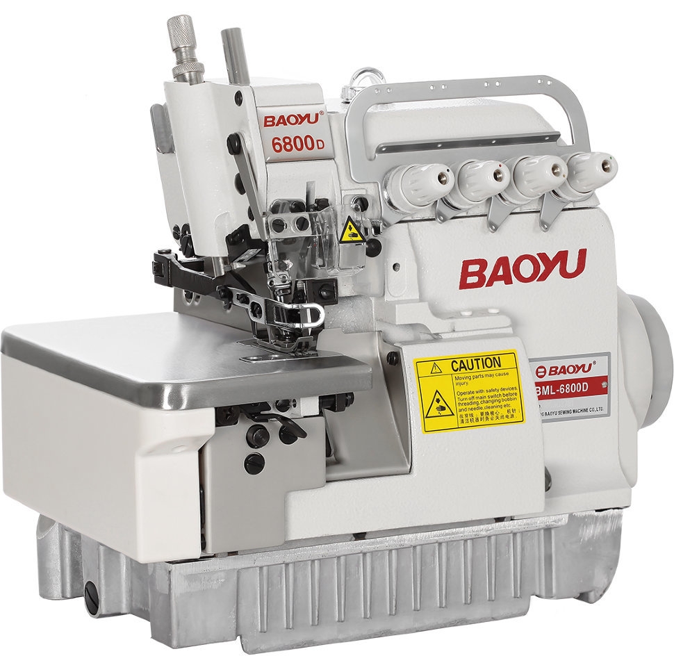 O Baoyu BML-6804D é um overlock industrial de duas agulhas e quatro fioscom uma plataforma de manga plana, projetado para costurar produtos têxteis a partir de tecidos de malha leves e médios. Ao trabalhar com duas agulhas, o overlock pode fazer uma costura elástica de sobre-costura-sobre-over-over ou pode ser usado como uma costura regular de agulha única apenas para overcasting Sistema de agulha - DCx27 SES. O comprimento máximo do ponto é 3,8 mm. A largura máxima do ponto é 6 mm. A distância entre agulhas é de 2 mm. A velocidade máxima de costura é de 6.000 st / min.