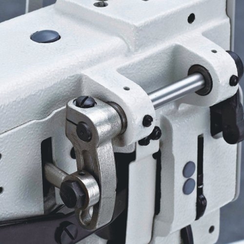 Reta duas agulhas, transporte triplo (dente / agulha / calcador), lançadeira grande vertical e lubrificação automática. Utilizada na confecção de bolsas, cintos, carteiras, luvas, jaquetas, fichários, materiais de segurança e artigos em couro.Vantagens: A lançadeira vertical foi projetada para trabalhar com agulha e linha de espessura grossa, ideal para costurar materiais pesados e artigos em couro. Sua lançadeira grande tem a capacidade de armazenar até 50% a mais de linha do que uma lançadeira pequena. Seu sistema vertical permite que a regulagem mecânica e o encaixe da bobina sejam feitos com mais facilidade e rapidez.