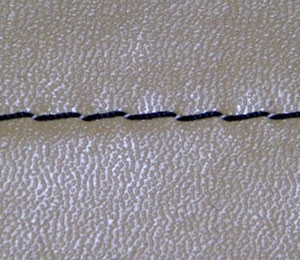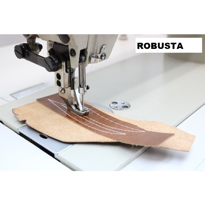 - Usada em costuras de materiais finos, médios e grossos, como pele, couro, plástico, sintético, etc.