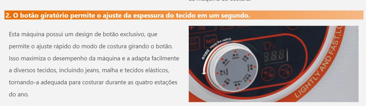 2. O botão giratório permite o ajuste da espessura do tecido em um segundo.
