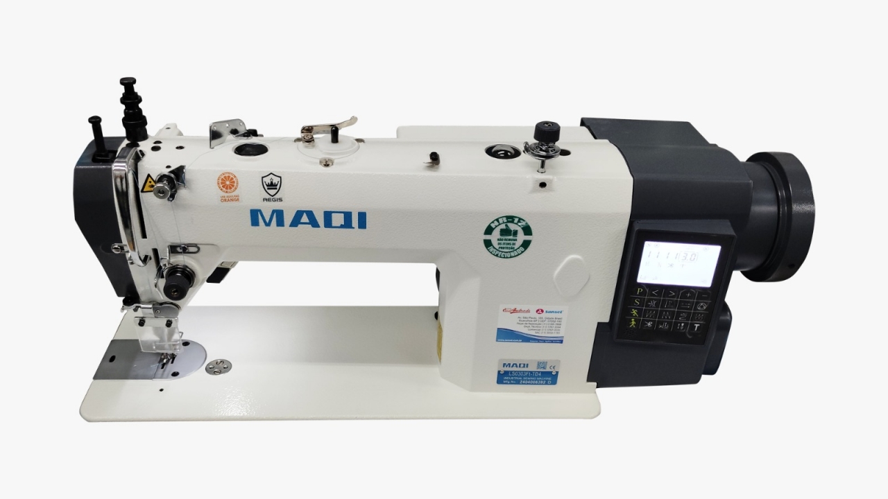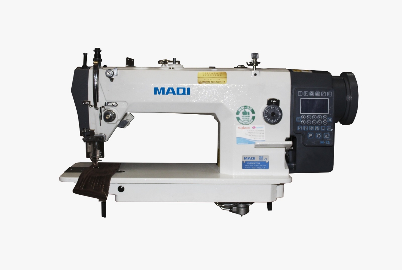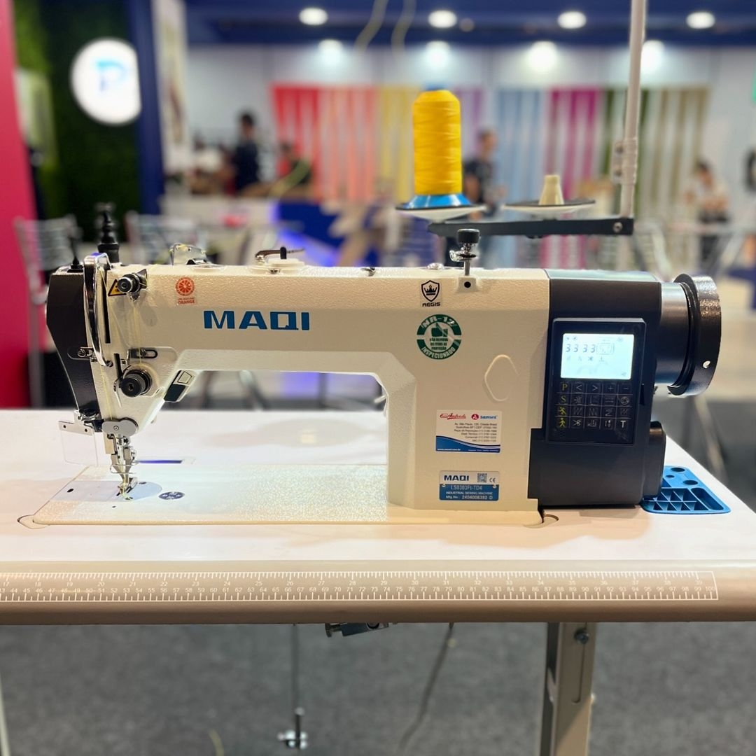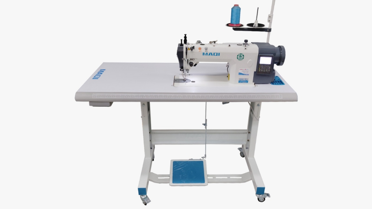 Máquina de costura reta industrial MAQI de transporte duplo (dente e calcador alternante) base plana com motor Direct Drive Eletrônica.