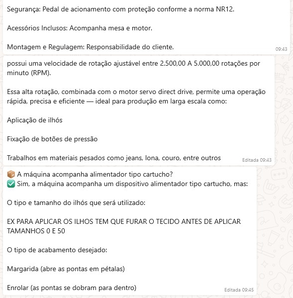 Essa alta rotação, combinada com o motor servo direct drive, permite uma operação rápida, precisa e eficiente — ideal para produção em larga escala como: