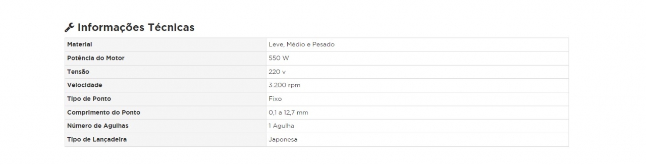 | Número de Agulhas | 1 Agulha |