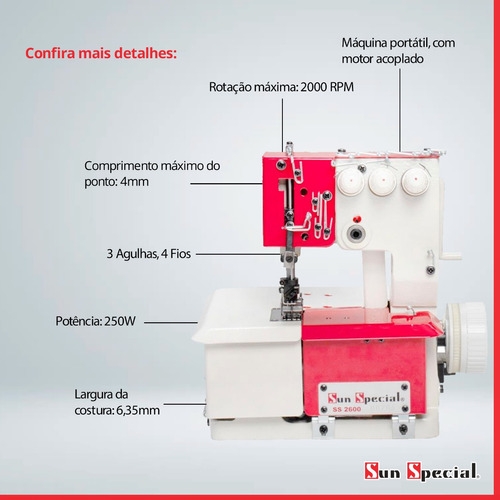 - Máquina de Costura Semi Industrial tipo Galoneira, modelo SS-2600-3 COM VERMELHA, é ideal para quem quer começar no ramo textil.