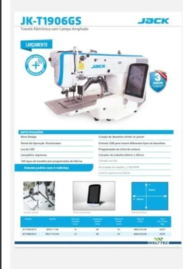 Máquina de Costura Travete Eletrônica Direct Drive Jack JK-T1906GS