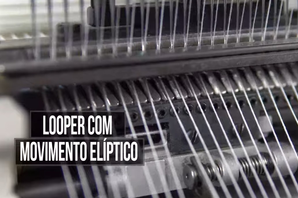 - Exclusivo sistema porta-cones para lastex que garantem a entrada dos fios na máquina desenrolados;