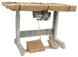 As máquinas Yamata acompanham estante com regulagem de altura que seguem os padrões de conforto e ergonomia para o operador, além de tampo em madeira revestido em fórmica com régua graduada.