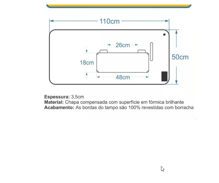 - Medida do Tampo: 110 x 3,6 x 50cm